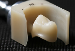 セラミックとプラスチックの成分が含まれた材料のことです。ハイブリットセラミッククラウンはセラミックの硬さとプラスチックの粘りを兼ね備えた優れた被せ物です。セラミックとレジンを混ぜ合わせたハイブリットセラミックのブロックをCAD/CAMという機械で削り出して作る「cadcam冠(キャドカムかん)」というタイプのものが保険適用されるようになりました。現在、保険診療で行えるのは平成27年8月の時点で小臼歯の冠の治療のみです。