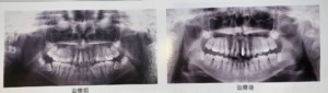 さらに、萌出時期に近づくにつれて、第二大臼歯は近心傾斜が見られるようになり、第一大臼歯に食い込んだ状態になってきます。